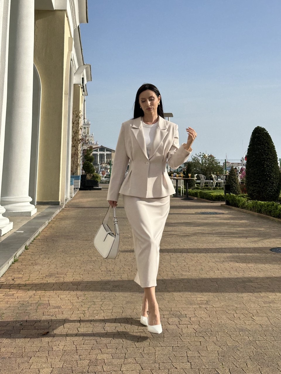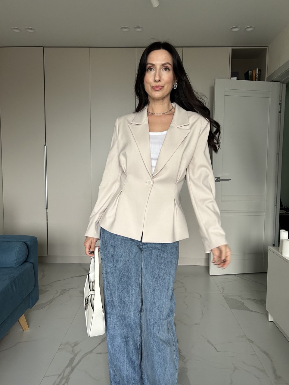 Жакет с защипами на талии из вискозы высокого качества. Состав : 65% Вискоза 35% ПЭ Подклад : 60% Вискоза 40% ПЭ (Италия) Цвета : песочный ,черный, красный